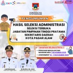 PENGUMUMAN HASIL SELEKSI ADMINISTRASI SELEKSI TERBUKA JPTP SEKRETARIS DAERAH KOTA PAGAR ALAM TAHUN 2025